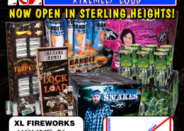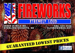 XL Fireworks is centrally located on 15 Mile Road at Moravian in Sterling Heights, Michigan. We’re easily accessible for all in the Metro Detroit area – nearby to 696, I-94 and I-75 as well as 8 Mile, M59 (Hall Road), M53 (Van Dyke) and M97 (Groesbeck).